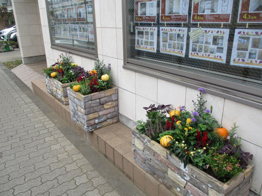 店頭のプランターたちをハロウィン仕様にリニューアルしました。とても可愛い仕上がりになりスタッフみんな大満足です♡